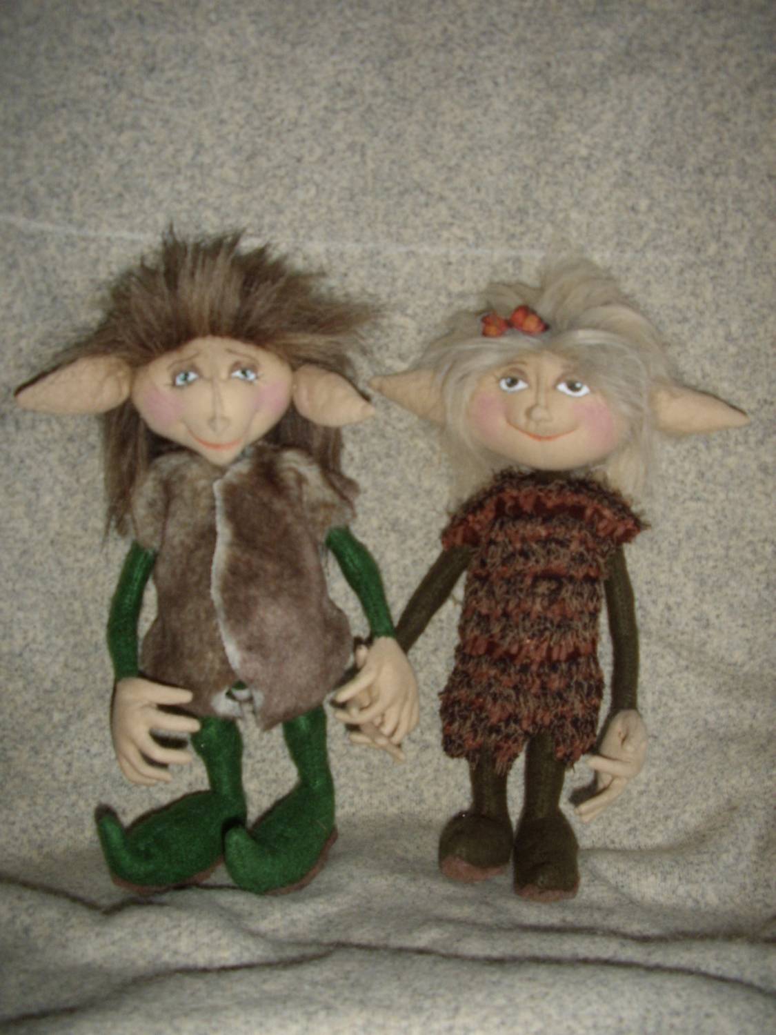 Что касается Лесного эльфа и тролля ,то я ,для себя ,решила,что лучший материал для этих кукол -для головы и рук(или кистей рук) - трикотаж,а для тушки и ножек- зелёный флис(филц-как говорят в Латвии)Он легко шьется и сразу эффект "одетости". Кроме того у эльфов зелёный цвет приоритетный...в дополнение(одежда) идёт бежевый или коричневый,исключение составляют "серые эльфы" или " черные",но с такими ярко выраженными отрицательными персонажами "мы не дружим"... Если нужна справка по эльфам вообще(описание их самих,деление на классы и описание одежды...) - могу сбросить,но не сюда- очень большой объем,а ссылка...не знаю сохранилась ли... Где-то я уже размещала ссылку...не помню...
