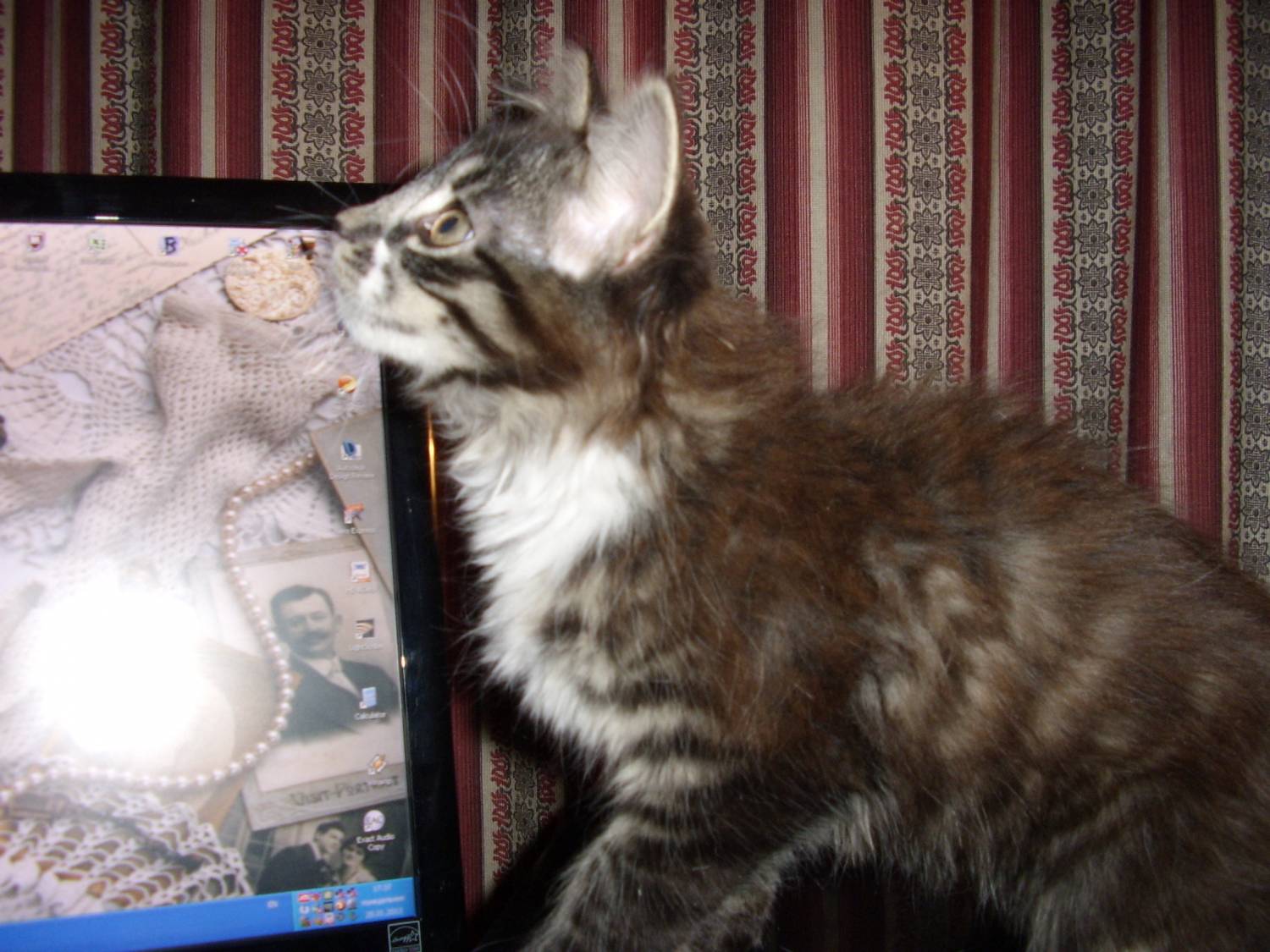| ufa_sveta65, Светик,приблизительно такую картину(как на фото) я вчера вечером наблюдала...фотоаппарата близко под рукой не было Он бегает по клавиатуре,нажимает клавиши(в самый ответственный момент),ловит все подвижное на мониторе...сегодня залез на пластиковое ведро с водой,перевернул крышку и провалился...благо воды там было "ему под пузо"...вылетел наружу и понёсся дальше...оставляя следы-лужицы по всему полу...вытирайте,кому надо! Гиперактивный ребёнок...смех-да и только!
