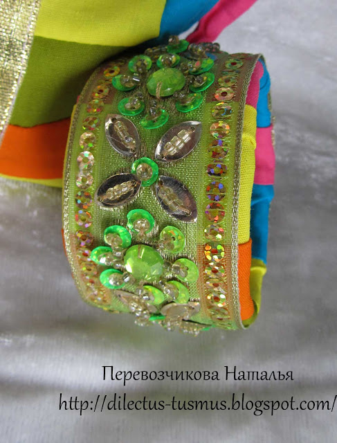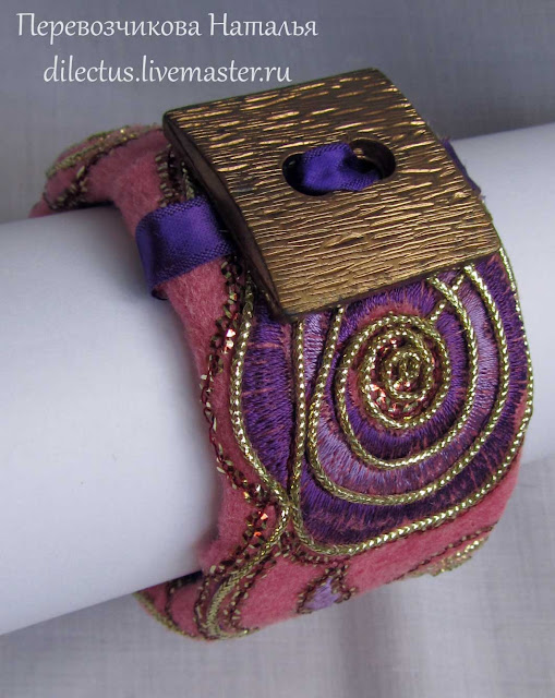 | Ой, спасибо, захвалили! Браслет делаю так: из литровой пластиковой бутылки вырезаю сектор и через лист бумаги утюгом оплавляю ему края. они при этом закручиваются внутрь. сразу может не получиться - надо приноровиться с нажимом - он должен быть равномерным. и сильно края лучше не закручивать, иначе рука потом может не пролезть. ну, а дальше декорируем, как фантазия подскажет.